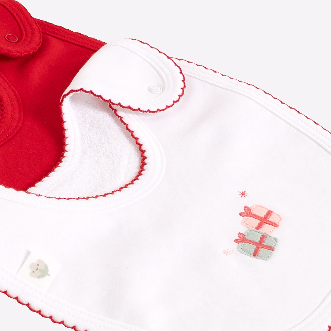 2 baberos de algodón Pima para que tu bebé este elegante y acorde a estas fechas tan especiales.